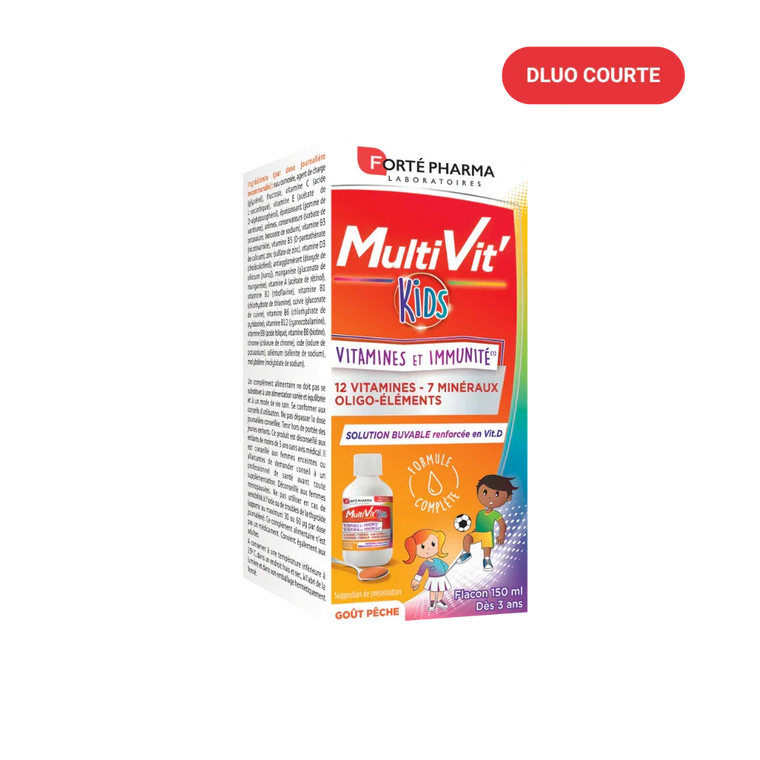 Parce qu'il n'y a pas que les grands qui ont besoin d'un coup de pouce pour rester en forme ! Multivit'Kids Solution buvable c'est notre solution multivitaminée facile à prendre dès 3 ans et au bon goût pêche.